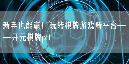 新手也能赢!玩转棋牌游戏新平台——开元棋牌ptt